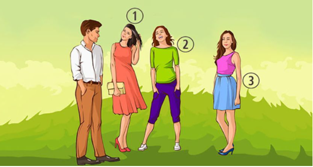 Ispostavlja se da, kada se muškarcu sviđa žena, on nesvesno okreće telo u njenom pravcu ili izbacuje nogu napred u pravcu žene. U ovom slučaju, to je devojka koja je obeležena na slici brojem tri.