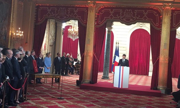 Na ulazu u palaču Macrona i njegovu suprugu Brigitte Macron, dočekao je sada već bivši predsjednik Francuske Francois Hollande. Nakon razgovora u predsjedničkoj rezidenciji, oni su pristupili svečanoj ceremoniji preuzimanja dužnosti.