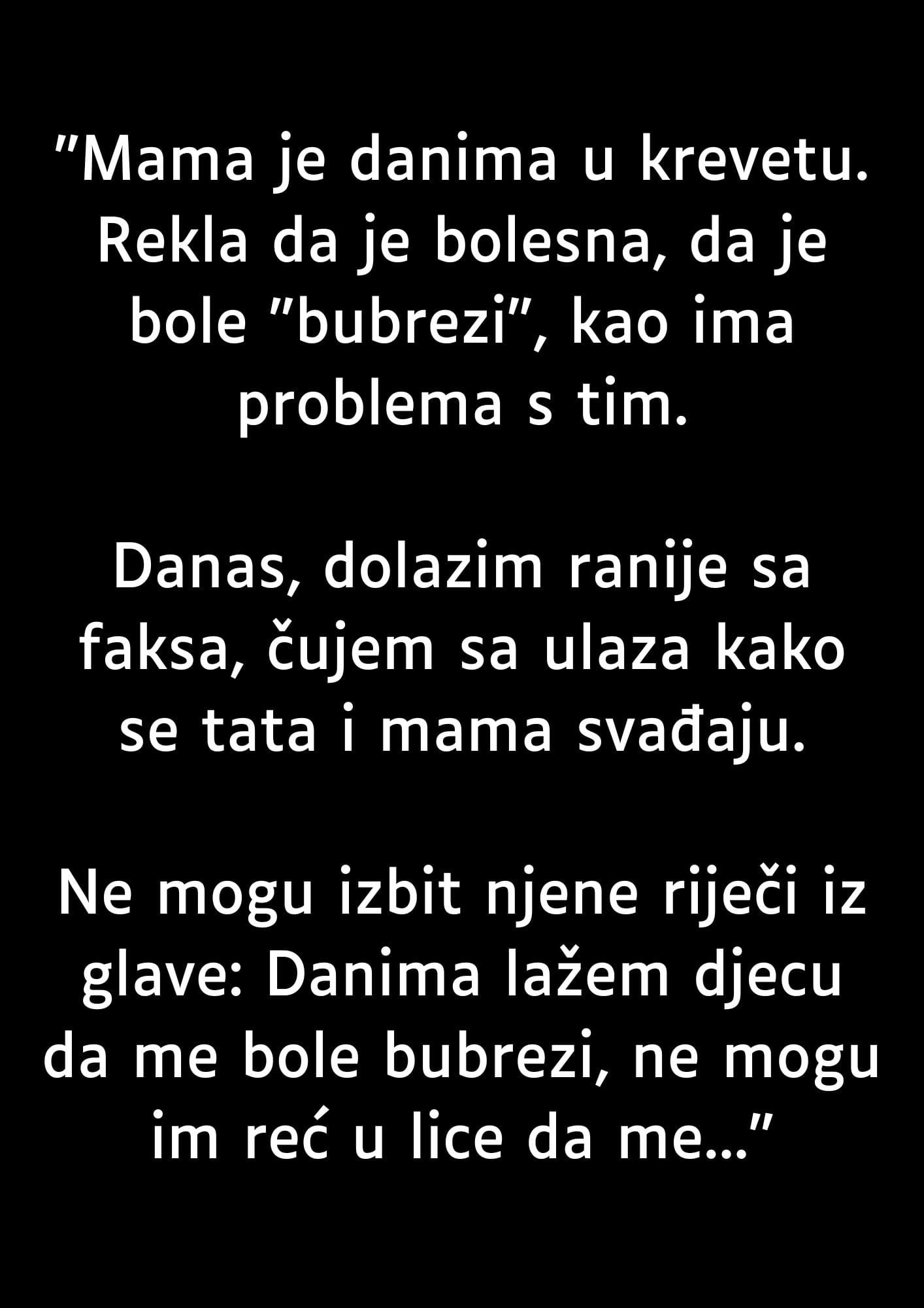 “Mama je danima u krevetu. Rekla da je bolesna, da je bole ”bubrezi”, kao ima problema s tim.