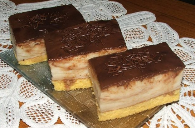 Krema:5 belanaca;5 kašika šećera;3 pudinga sa ukusom slatke pavlake;2 ravne kašike gustina;900 ml vode;1 vanilin šećer;100 g čokolade punjene karamelom;100 g čokolade;malo čokoladnih mrvica