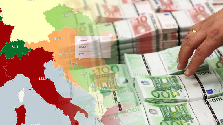 Najveći javni dug po glavi stanovnika u regiji bilježe Slovenija i Hrvatska, a najmanje zaduženi građani BiH i Kosova.