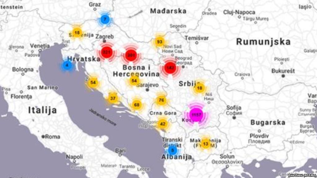Tome treba dodati i oko 100.000 stradalih u ratu u Bosni i Hercegovini, gdje je ranije obavljeno opsežno terensko istraživanje. Od ukupnog broja, na interaktivnu mapu uvršteno je njih 19.975.