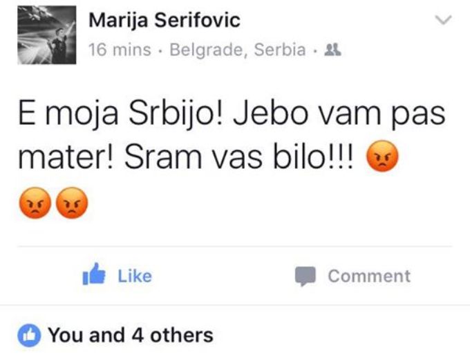 Marija Šerifović: “Srbijo, sram vas bilo! Sram vas bilo!”
