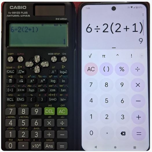 Jedan tviteraš je na prvom kalkulatoru izraz postavio sa znakom koji označava množenje između broja 2 i sabiranja u zagradi i dobio je 9. Kada je isto pokušao bez naznačavanja operacije množenja rešenje koje je digitron pokazao iznosilo je 1.