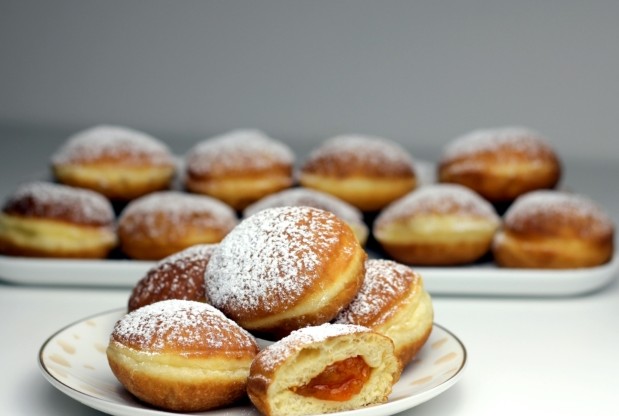 Razvaljajte na 1,5 cm debljine i čašom režite krafne. Pustite ih da odmore još 10 minuta. Pržite u zagrijanom ulju na srednjoj vatri, prvo poklopljene 2-3 minute, zatim otklopljene. U ulje ide prvo ide ona strana krafne koja je bila gore dok su se dizale. Tako krafne ljepše narastu, dobije se lijep svijetli prsten i manje upijaju ulje. Ocijedite na papiru i pospite šećerom u prahu.
