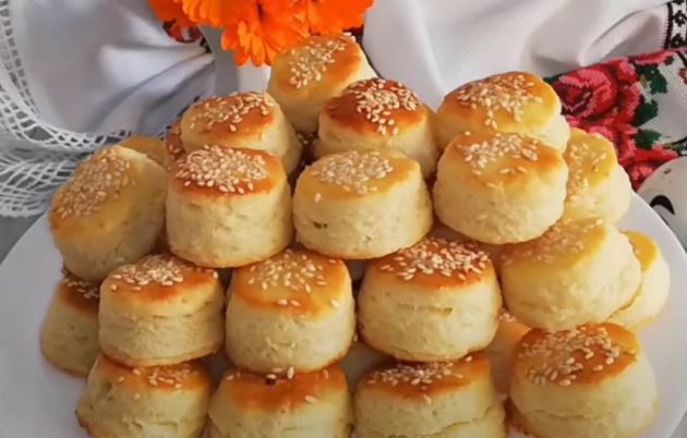 Preostalo tijesto ponovno razvaljajte (ne više od jednom) i izrežite. Pecivo slažite u razmaku od 2-3 cm na lim za pečenje obložen papirom za pečenje. Premažite žumanjkom i pospite sezamom ili ribancem. Pecite u pećnici na 200 °C 10 – 15 minuta dok malo ne porumeni.
