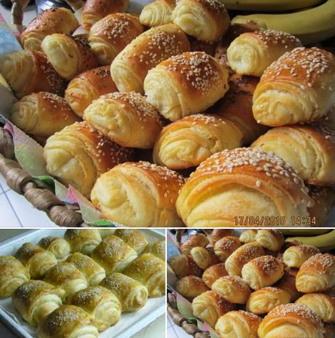 Aktivirati kvasac sa 2 dcl toplog mleka, secerom i kasicicom brasna. Dodati ostale sastojke i umesiti meko testo i ostaviti da udvostruci volumen. Nadoslo testo podeliti u 4 jufke. Posebno sjediniti mast, zumanca i brasno i dobro izmesati. Svaku jufku razviti na velicinu veceg tanjira i premazati premazom (sve 4 jufke)