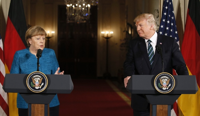 “Velika mi je čast i privilegija biti ovdje u Bijeloj kući sa predsjednikom Trumpom na našem prvom sastanku. Prije sam govorila da je uvijek bolje govoriti međusobno nego govoriti o nekome ko nije prisutan. Razgovarali smo o raznim temama i izrazili zajedničke interese. Glede prošlosti, mi Nijemci dugujemo puno toga SAD posebno zbog privrednog rasta. To se desilo zbog Marshallovog plana, a SAD i saveznici su podržavali Njemačku tokom Hladnog rata. Drago mi je da danas možemo živjeti slobodno i drago mi je da je gospodin Trump rekao koliko je NATO važan”, kazala je Merkel.