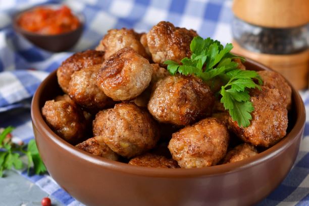 Pržite mesne okruglice sa svih strana dok ne postanu zlatnosmeđe. Kad su mesne okruglice gotove, stavite ih na papirnati ručnik kako bi upio višak ulja. Poslužite mesne okruglice tople, uz rižu ili pire-krumpir i salatu.