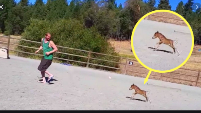 Na snimci se može vidjeti maleni poni kako vija čovjeka. Muškarac prvo pokušava pobjeći, a beba prihvaća izazov te ga počinje vijati. Muškarac svako malo staje kako bi ga beba imala priliku sustići.Žena koja je snimila taj divan prizor objasnila je da je taj poni star samo tri dana. U snimku je ušetala i majka bebe ponija koja je došla provjeriti je li njezina beba na sigurnom. Nakon toga je muškarac podragao bebu i ponovno potrčao, a poni je krenuo za njim.