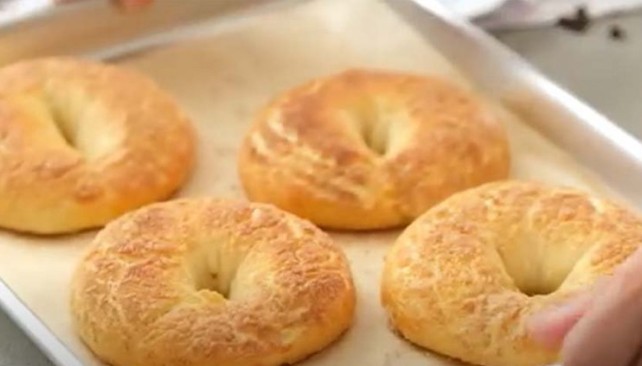 Dodajte jogurt i mešajte viljuškom ili špatulom dok se dobro ne sjedini, izgledaće kao sitne mrvice. Lagano pospite brašnom radnu površinu i izvadite testo iz posude, mesite nekoliko puta, oko 15 okreta (ne bi trebalo da ostavlja testo na ruci kada ga odvajate). Podelite na 4 jednake kuglice.