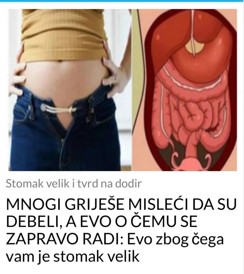 Nadutost stomaka definira se kao pojava velike količine plinova u crijevima. Nadut stomak može biti tvrd na dodir, a osoba može imati i grčeve, vjetrove, proljev, a zbog pritiska nerijetko dolazi i do boli u donjem dijelu leđa.