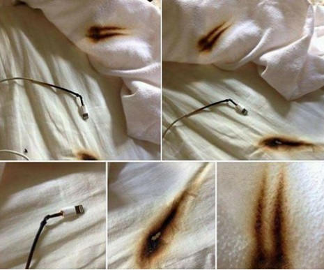 Zbog toga su objavili fotografiju kako bi pokazali šta punjač može napraviti, a na kojoj se vidi kako je plahta na krevetu izgorjela jer se žica od punjača cijelu noć grijala i tako je zapalila.
