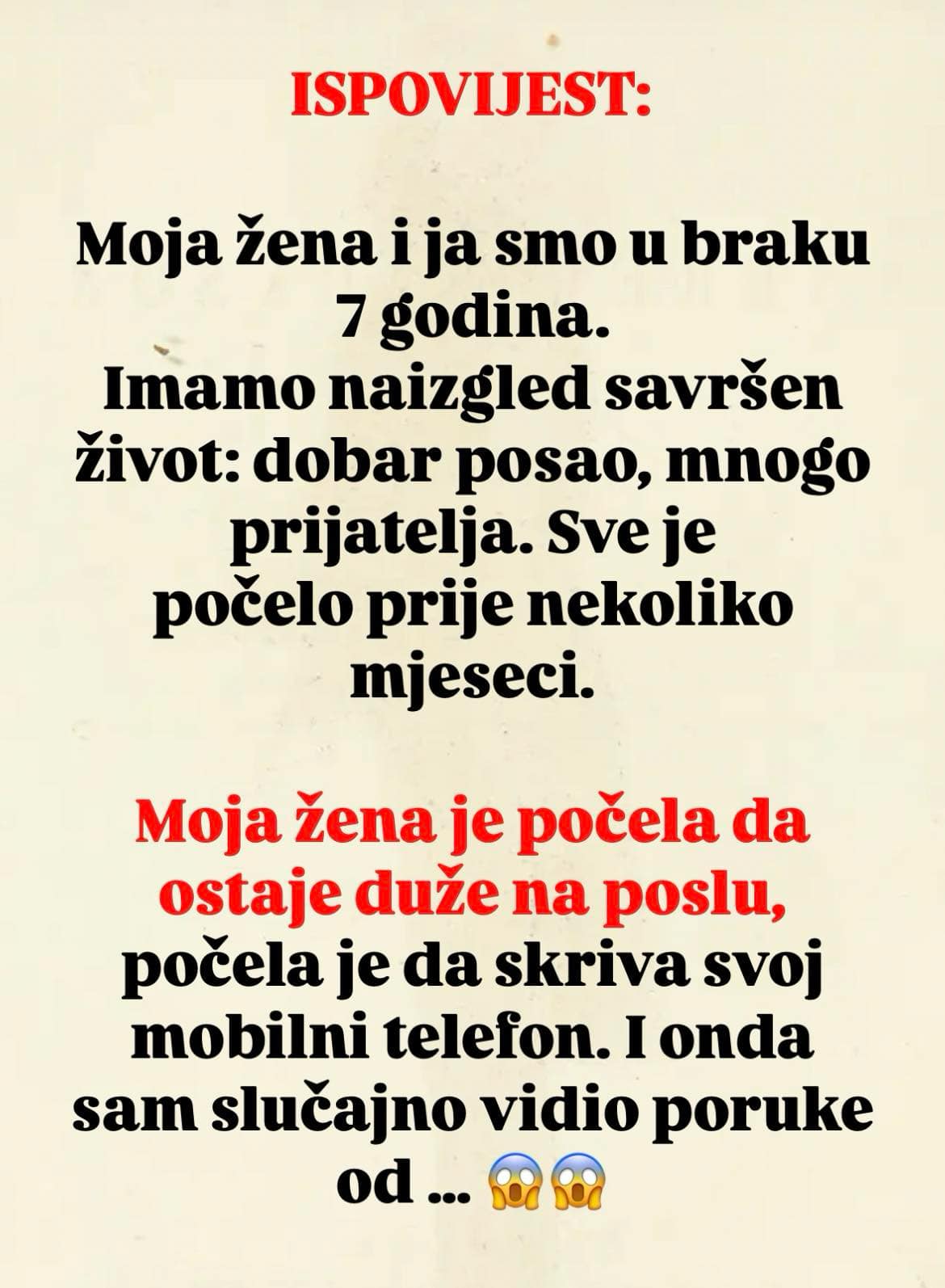 Moja žena je počela da ostaje duže na poslu, počela je da skriva svoj mobilni telefon. I onda sam slučajno vidio poruke od nekog muškarca na njenom telefonu. Bile su romantične. Takođe sam pronašao nekoliko fotografija moje žene s njim. Srce mi je ubrzano kucalo. Ali sam joj sve ispričao. Bila je šokirana. Ispostavilo se da je taj tip zapravo terapeut kod kojeg je išla da riješi lične probleme. Moja žena je rekla da je razvila osjećanja prema njemu i da je njihova veza postala više od profesionalne. Uvjerila me je da je sve gotovo i da želi da radimo na našem braku. Sada sam na raskršću. S jedne strane, želim da odem, osjećam se prevaren i više ne mogu da verujem svojoj supruzi. S druge strane, razmišljam o tome da pokušam ponovo da izgradim naš odnos, posebno s obzirom na njenu spremnost da potraži pomoć iMO