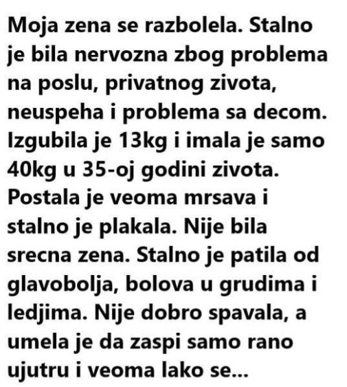 MOJA ŽENA SE RAZBOLILA. STALNO JE BILA NERVOZNA ZBOG PROBLEMA NA POSLU…
