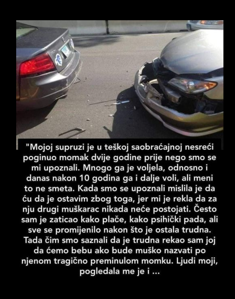 Kada smo se upoznali mislila je da ću da je ostavim zbog toga, jer mi je rekla da za nju drugi muškarac nikada neće postojati, ali naprotiv, svaki dan se trudim, ne da ga zaboravi, već da počne da živi, da bude sretna i svaki osmijeh na njenom licu mi više znači nego kofer zlata.Često sam je zaticao kako plače, kako psihički pada, ali sve se promijenilo nakon što je ostala trudna. Tada čim smo saznali da je trudna rekao sam joj da ćemo bebu ako bude muško nazvati po njenom tragično preminulom momku.