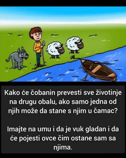 Pitanje glasi: kako će čobanin prevesti sve životinje na drugu obalu, ako samo jedna od njih može da stane s njim u čamac?