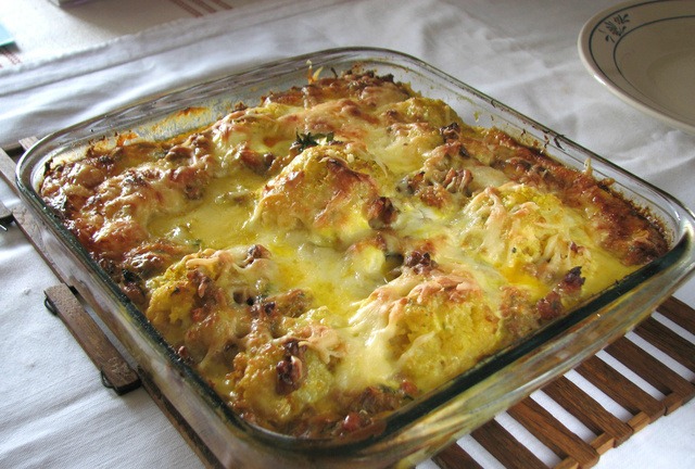 Pospemo sa ribanim sirom i pečmo u pećnici oko 40 minuta na 200ºC.