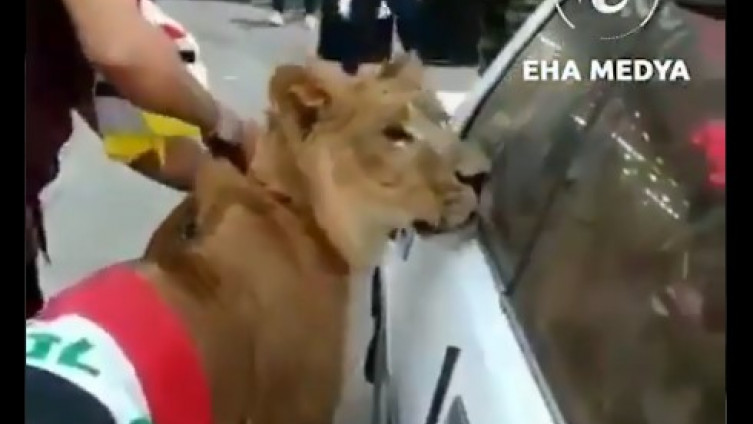 On je snimljen kako ulicama hoda s lavom na povocu.