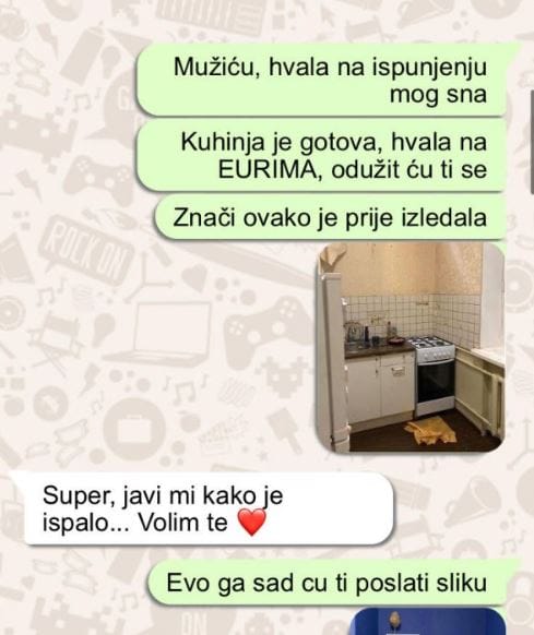 Muž mi radi u Njemačkoj. Majstori su mi sredili kuću i evo kako sada izgleda: Jednu ženu je veoma obradovalo to što joj je muž poslao novac kako bi uredila kuhinju. Bila je veoma sretna i poslala mu je sliku kako bi mu pokazala kakvo je sada stanje. Za nju je to bio pravi poklon. Pogledajte kako je kuhinja prije izgledala, a kako sada izgleda: