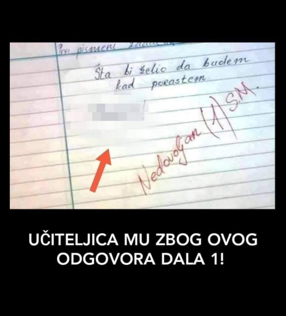 No, njegova učiteljica nije očito tražila takav odgovor, pa je učenika za njegovu iskrenost “nagradila” najmanjom ocjenom.