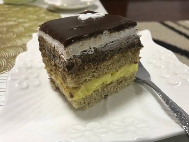 Sastojci za mliječnu kremu:670 ml mlijeka; 70 g gustina; 2,5 žlice šećera; 70 g bijele čokolade; 170 g margarina, na sobnoj temperaturi;100 g šećera u prahu