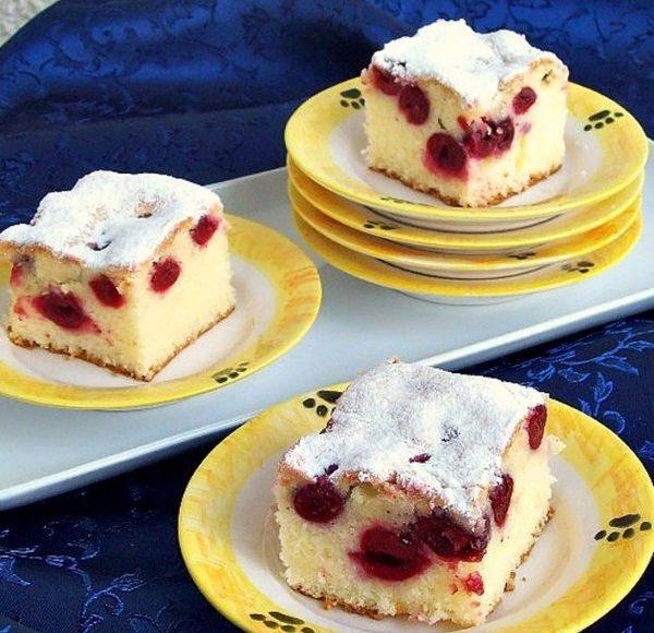 Navedene sastojke dobro izmiješati, sipati u namašćenu i pobrašnjenu tepsiju i peći na 200*c , nisam mjerila vrijeme ali već se otprilikevidi ili provjeravati . Kad je kolač pečen i ohlađen posipati šećerom u prahu. ( po želji možete dodati višnje, ukusan je i bez i sa voćem )