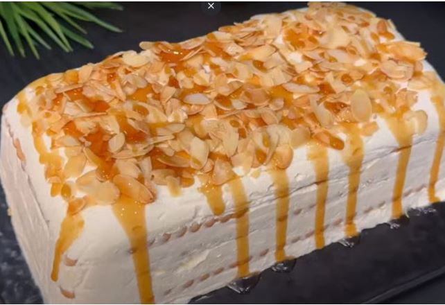 Na dno kalupa obloženog prozirnom folijom stavite malo kreme pa preko cijele površine posložite petit kekse koje ste prethodno umočili u mješavinu vode, šećera i limuna.