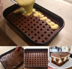 Sastojci:4 veća jaja;300 ml ulja;300 gr šećera;korica od jednog većeg limuna;250 ml mleka;600 gr brašna;1 prašak za pecivo