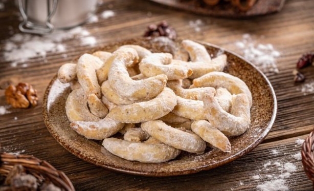 Od navedenih sastojaka zamesiti testo. Margarin treba da omekne na sobnoj temperaturi. Kad napravite smesu rastanjite je na oko 1 cm debljine, a potom kalupom ili rukama pravite potkovice i ređajte na pleh u kojem će se peći oko 20 minuta na 200 stepeni. Kad su gotove uvaljajte ih u prah šećer i služite uz kafu, čaj ili kao jednostavno zaslađenje posle ručka.