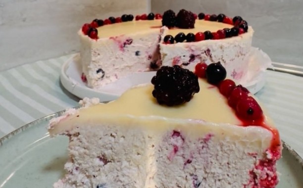 Umutiti slatku pavlaku, dodati šećer u prahu i pavlaku pa lepo sjedniti mikserom. Dodati crveno voće i plazmu. Tortu staviti u klaup veličine 22 cm. Odmah je preliti čokoladom i staviti da se hladi 3 sata.