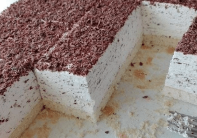 Kad se biskvit malo prohladi, skinite papir, vratite biskvit u kalup i prelijte s 150 ml toplog mlijeka. Već dok se biskvit peče možete početi s pripremom kreme. U 1 dl mlijeka pomiješajte puding, šećer i vanilin šećer. Ostatak zakipite, pa skuhajte u njemu smjesu sa pudingom. U vruću smjesu dodajte bijelu čokoladu i promiješajte da se otopi.