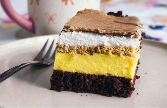 700 ml mlijeka– 2 vrećice pudinga-vanilija– 8 žlica šećera– 1 vanilin šećer– 100 g bijele čokolade– 400 g stracciatella jogurta– 50 g naribane ili sitno sjeckane tamne čokolade– 2 vrećice šlag pjene + 200 ml mlijeka– 1 vrećica želatine u prahu + 4 žlice vode