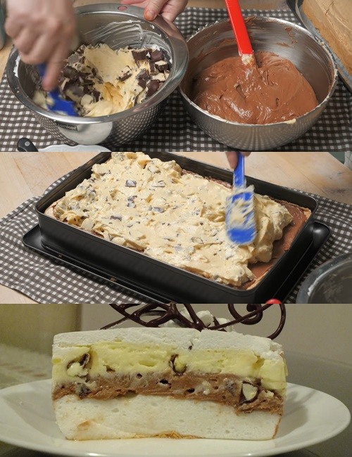 U prvu polovinu dodati 200gr otopljene čokolade.