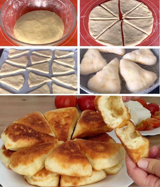 Zamesite testo dok se ne lepi, pa ga podelite na dva dela i oklagijom razvaljajte. Zatim se reže na trouglove kao pizza i prži na vrelom ulju u tiganju.