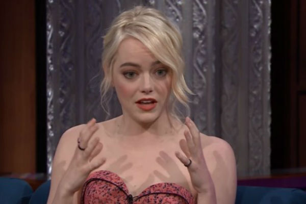 Stoun (28) je pokazala crtež koji je tokom terapije naslikala s devet godina o malom zelenom čudovištu koje je za nju predstavljalo strah i pričala je o tome kako joj je gluma pomogla da smanji taj osjećaj.