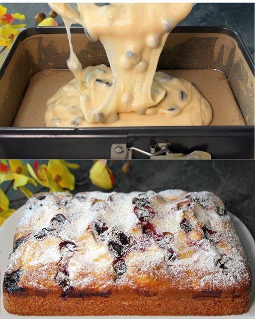 Ovaj divan kolač s višnjama i jogurtom nudi fantastičan užitak, spajajući slatkoću suhih i svježih trešanja s nježnim, vlažnim mrvicama.