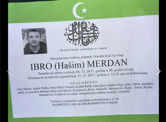 Dženaza Ibri Merdanu, kako je objavljeno, bit će obavljena u Klinčićima u 12:30 sati, a Benarisu Karamoviću u Musićima u 14 sati.