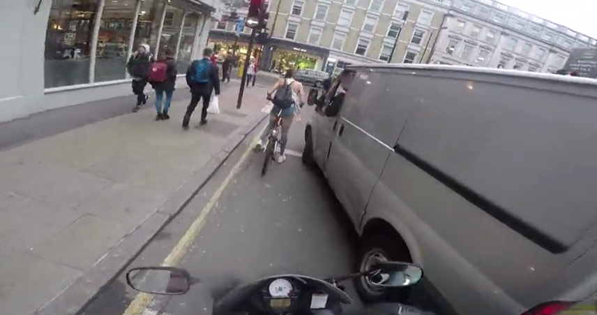 Kada se upalilo zeleno svetlo, oboje su krenuli da voze, a za njima je išao muškarac sa motorom, koji je imao kameru na svojoj kacigi.