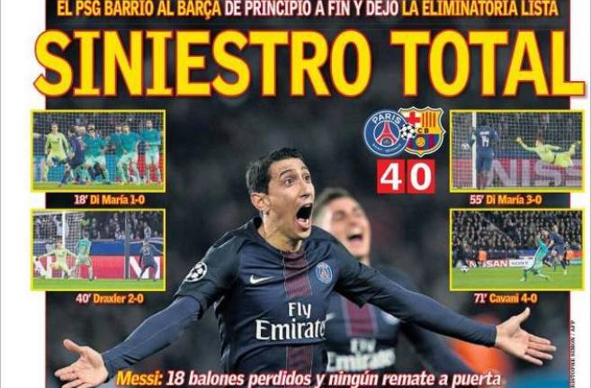 “Noćna mora u Parizu. PSG nanio Barceloni najteži poraz u posljednjih nekoliko godina i prisilio je da napravi čudesan povratak na stadionu Camp Nou”, objavio je na naslovnici L’Esportiu.