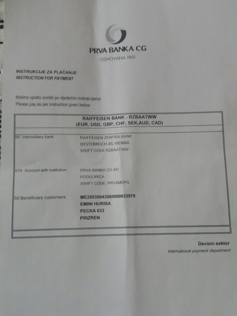 broj telefona: +383 44 301 018 ; viber: +383 44 301 018