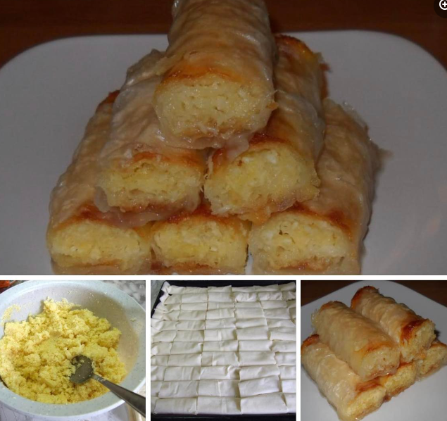 Umutiti jaja i šećer, pa dodati ulje, jogurt, kao i kokosovo brašno sa praškom za pecivo. Sve dobro sjediniti. Na radnu plohu staviti jedan list kore, premazati filom neke 3/4 lista, prekriti polovinom lista (možete staviti cijeli list, pa će biti veći komadi, a možete i odmah zarolati, baz da poklopite drugim listom), pa zarolajte. Zarolane, redajte u veliki pleh, premazan uljem. Postupak ponavljajte dok se sastojci ne utroše. Zatim izrežite na parčad željene veličine, prelijte sa malo ulja, pa pecite na 200 C.