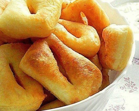 Tijesto pokriveno ostaviti na toplom oko 1/2h, zatim ga razmijesiti, razvaljati debljine 1/2cm, rezati kvadrate, u sredini svakog kvadrata napraviti prorez, peći na zagrijanom ulju.