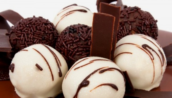 2. Tijesto dobro umjesiti. Praviti kuglice pa ostaviti jedan dan da se osuše i tek onda ih umakati u rastopljenu bijelu čokoladu. Ostaviti u frižideru da se ohlade.