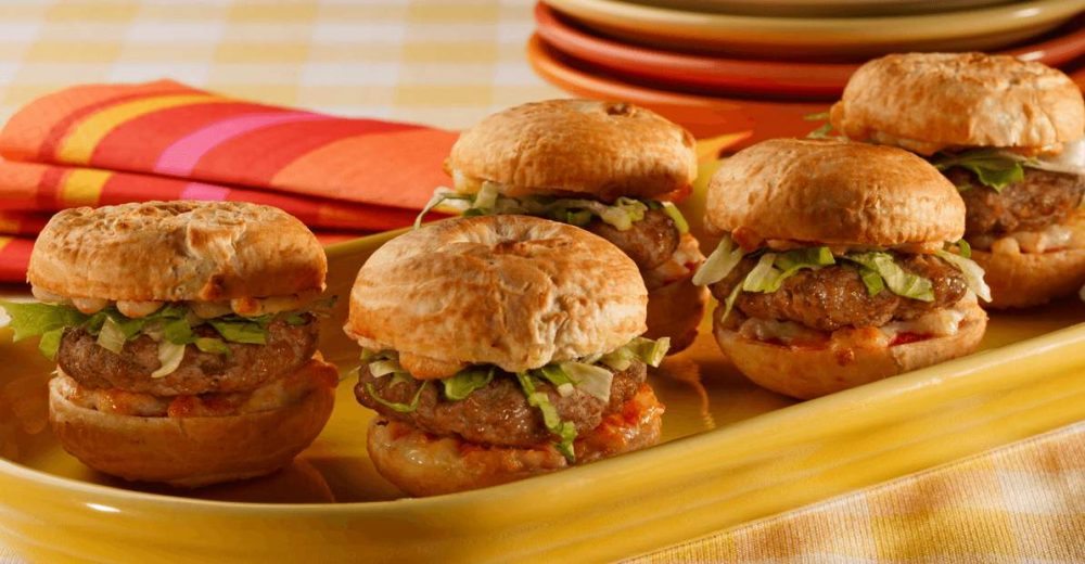 Ispržite ili zagrijte gotov burger i stavite ga u zemičku. Stavite paradajz sos i sir, a zatim senvič ubacite u mikrovalnu pećnicu na 20-ak sekundi da bi se otopio sir. Dodajte svjež bosiljak. Poslužite sa kriškama jabuke.
