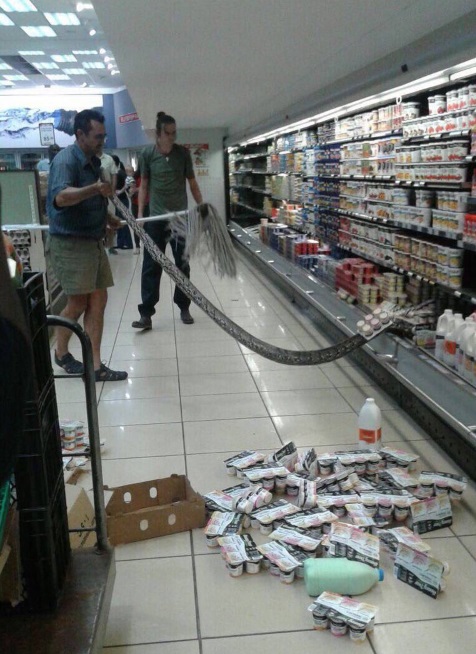 U jednoj prodavnici u Južnoafričkoj Republici dogodio se nevjerovatan incident, čovjek je tokom kupovine jogurta pronašao zmiju od četiri metara.