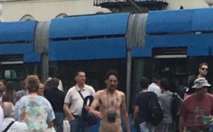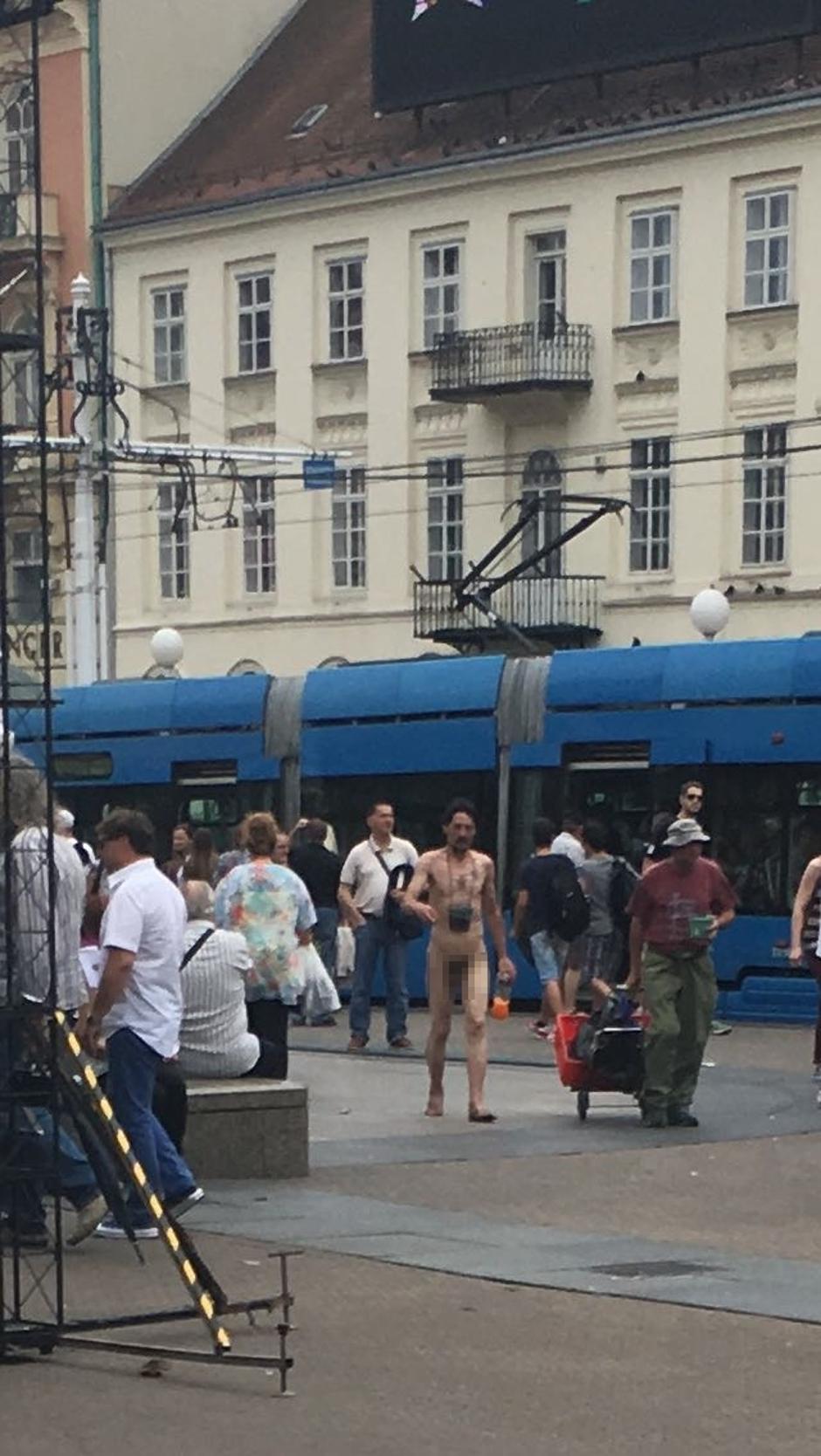 Zagrebačka policija je oko 14 sati dobila dojavu da goli muškarac šeta Trgom bana Jelačića u centru hrvatske prijestolnice.