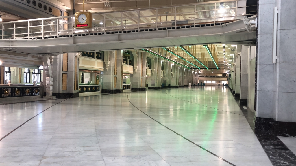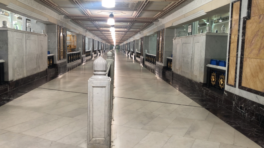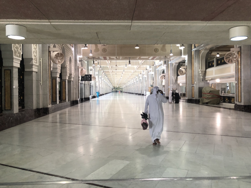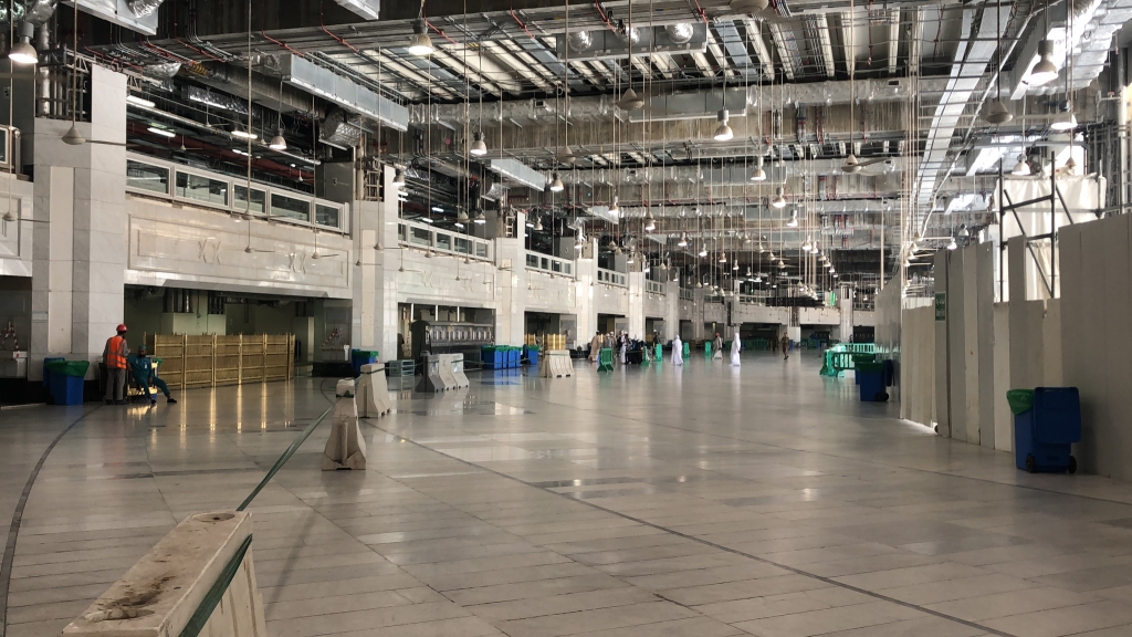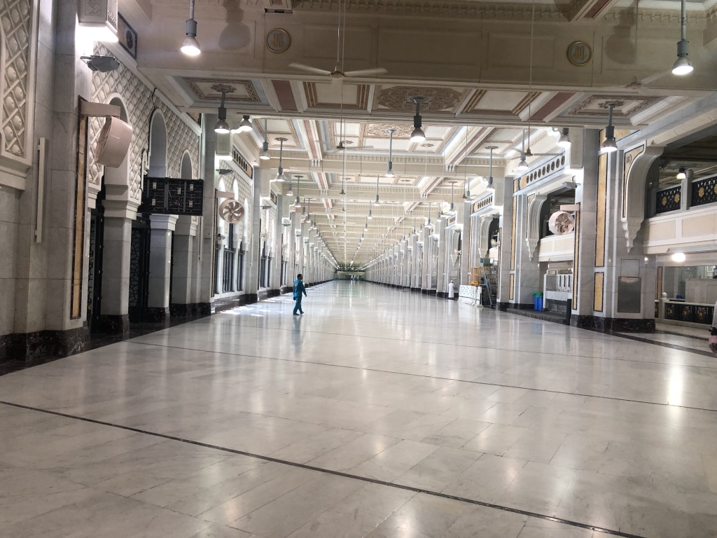 Prostor oko Kabe, koji je mjesto okupljanja vjernika iz cijelog svijeta, naročito tokom obavljanja hadža, jednog od pet stubova islama, potpuno je prazan. Oko Kabe moguće je vidjeti tek osobe koje osiguravaju i održavaju ovaj prostor. Na fotografijama je moguće vidjeti također i prostor kojim se kreću hadžije prilikom obavljanja sa’ja (kretanje između safe i merve), a kojim trenutno vlada potpuna tišina.