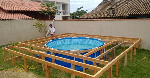 Kako bi sakrio bočne delove bazena, oko njega je izgradio drveni okvir