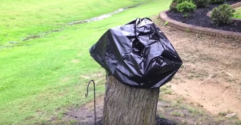 Umjesto da ga kompletno odstrani, on je ostavio panj i pokrio ga plastičnom vrećom. Želio je napraviti nešto posebno i uspio je.